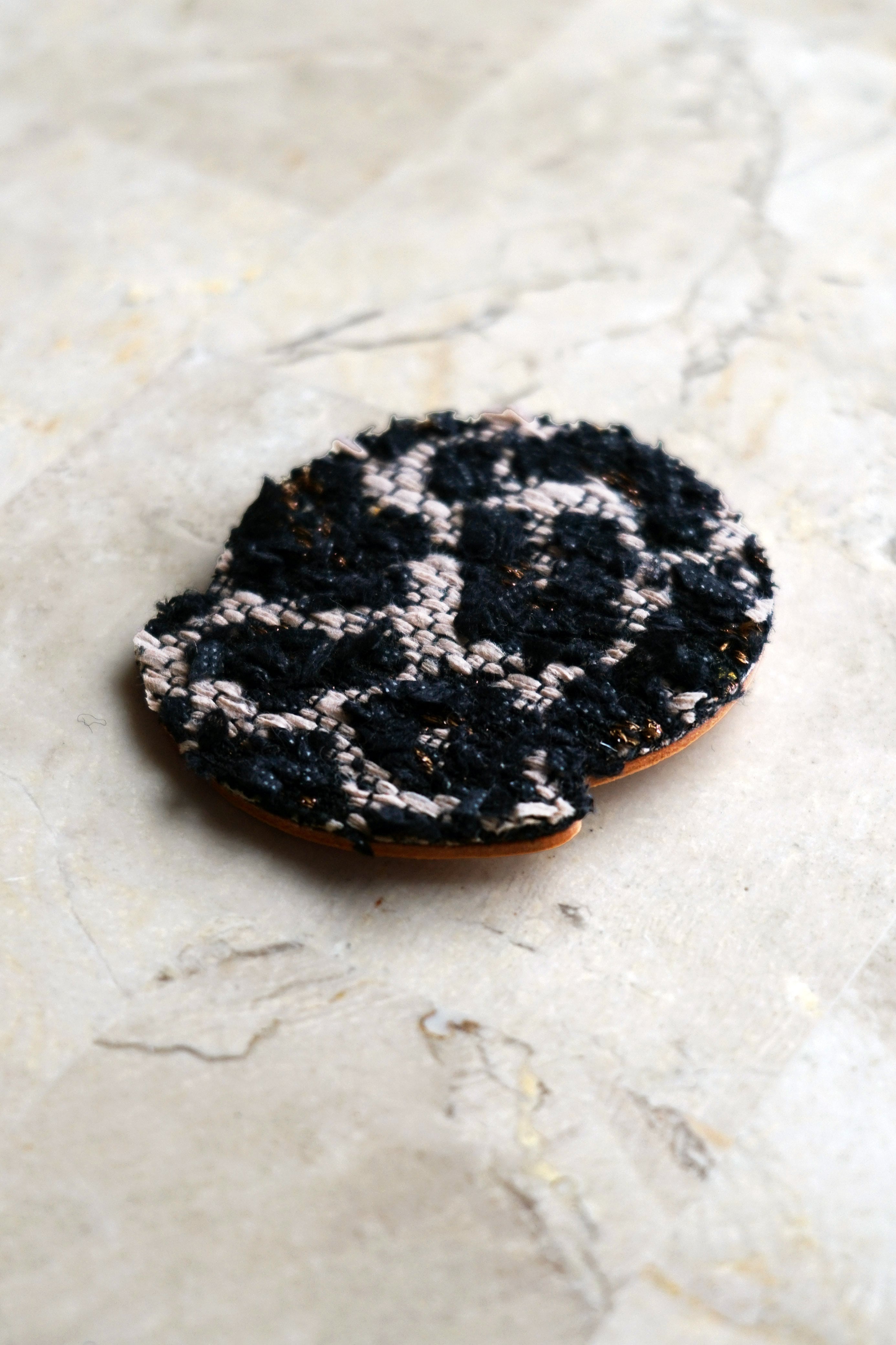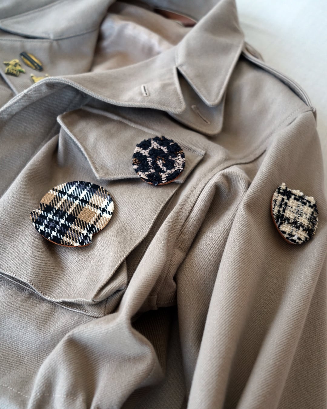 ジャケットやコート、バッグなど、日常の装いの中でさりげなく身につけることで、ものづくりを愛し、産地を支援する意思を共有するための一枚です。