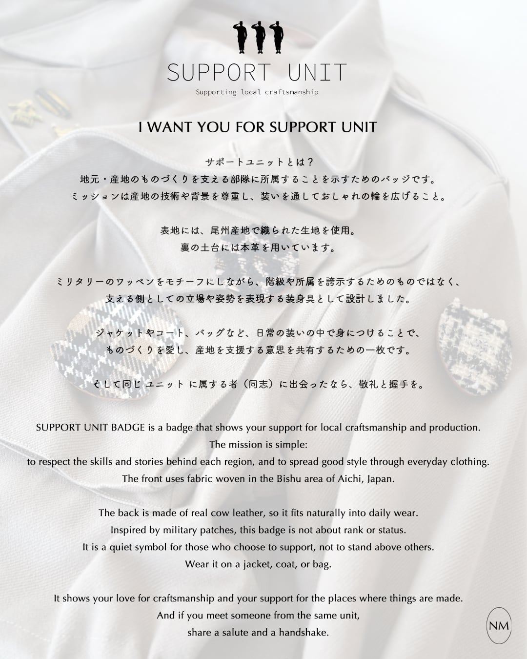 SUPPORT UNIT BADGE is a badge that shows your support for local craftsmanship and production.